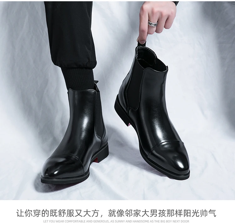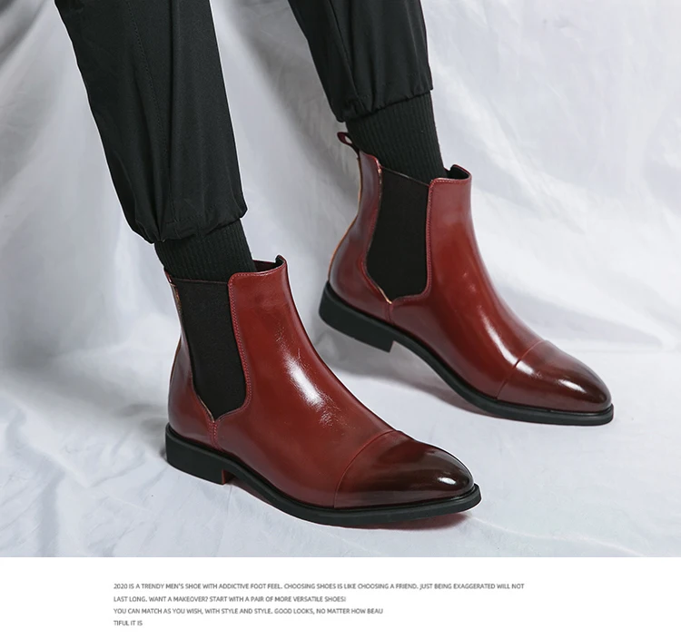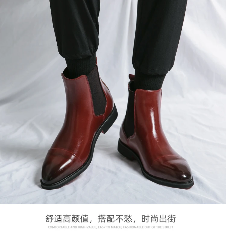 Classic Design Red Bottom Shoes Size 38-46/6.5-12 High Cut Fashion PU Leather Men Chelsea Boots