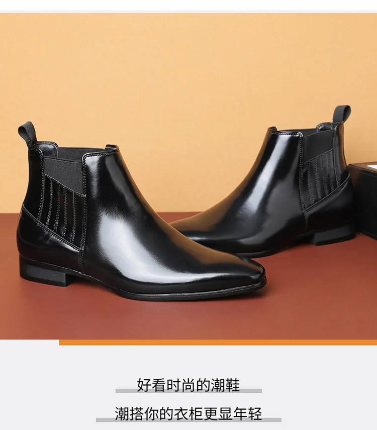 Custom High Quality Men's Pu Leather Boot Chelsea Boots Ankle Boots Winter Men Slip-on Dress Wedding Party Office Shoes