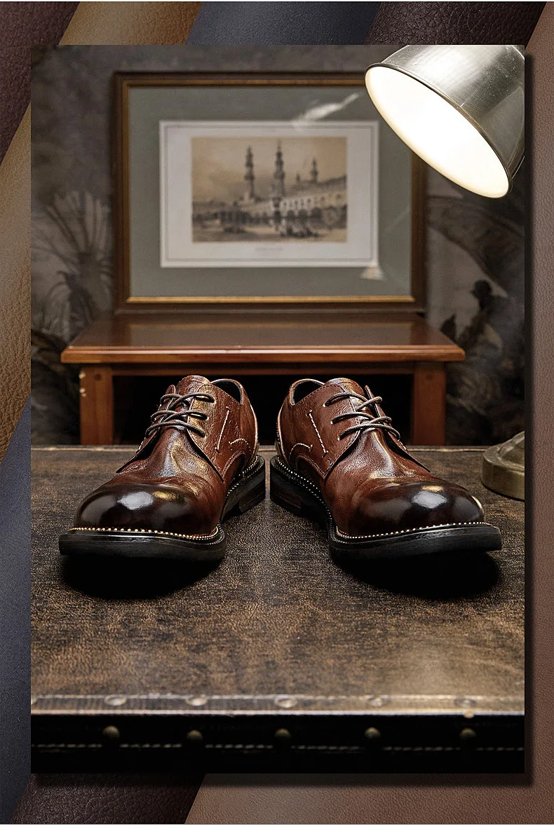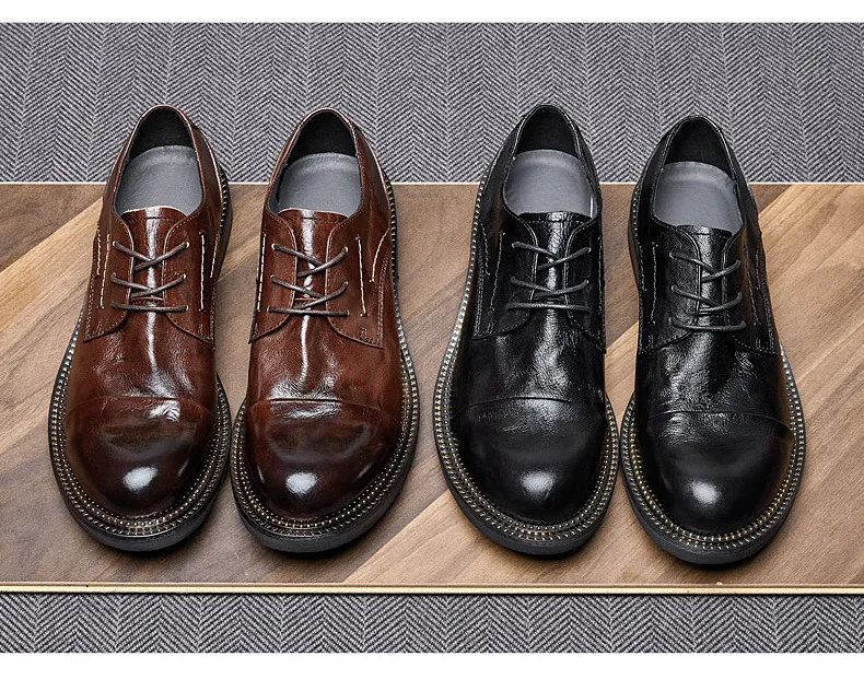 Lace-Up Men Shoes Men Dress Shoes Autumn Spring Summer Cowhide Men Flats Fashion High Quality Genuine Leather Casual Shoes Men