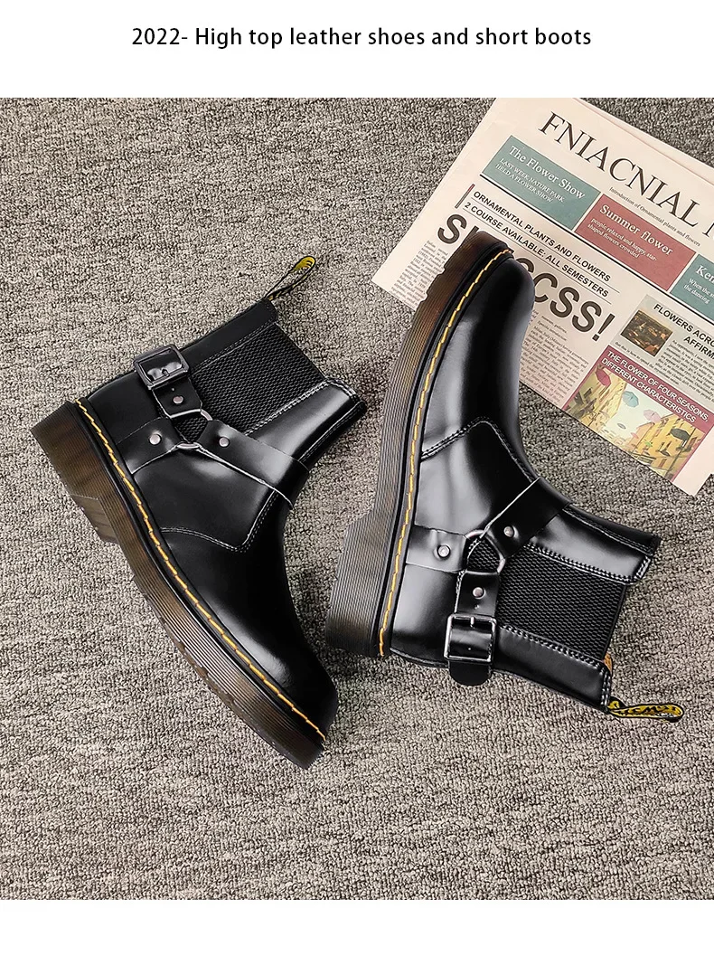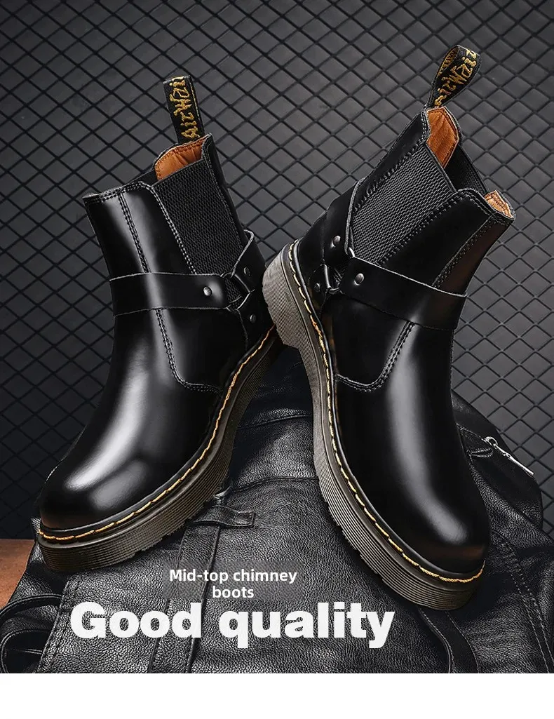 Leather Chelsea Boots Unisex round Toe Biker Style Short Boots Couples Matching Flat Bottom Rubber Sole Spring Autumn Wear