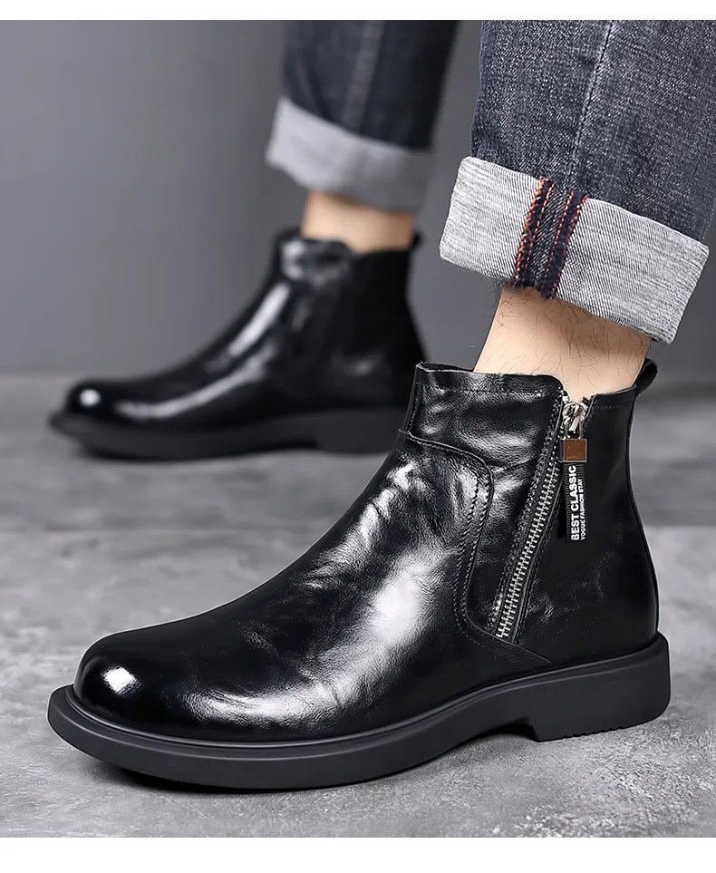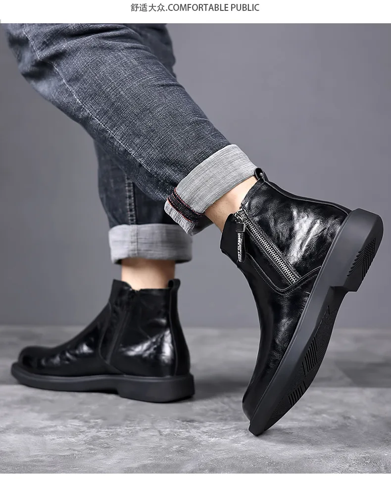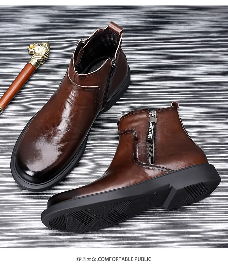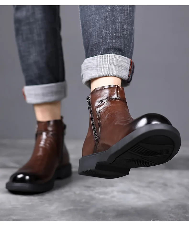 men fashion wedding party dress chelsea boots black brown original leather shoes cowboy autumn winter boot platform ankle botas