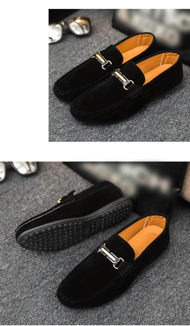 Men'S Slip-On Loafers - Black Faux Cover with Golden-Tone Buckle Straps, Round Toe & Rubber Sole for Casual & Formal Wear, All-Season Comfort, Formal Footwear, Sleek Shoe Design, Durable Footwear