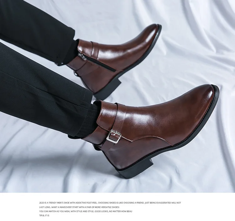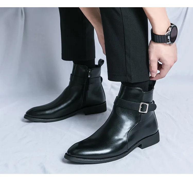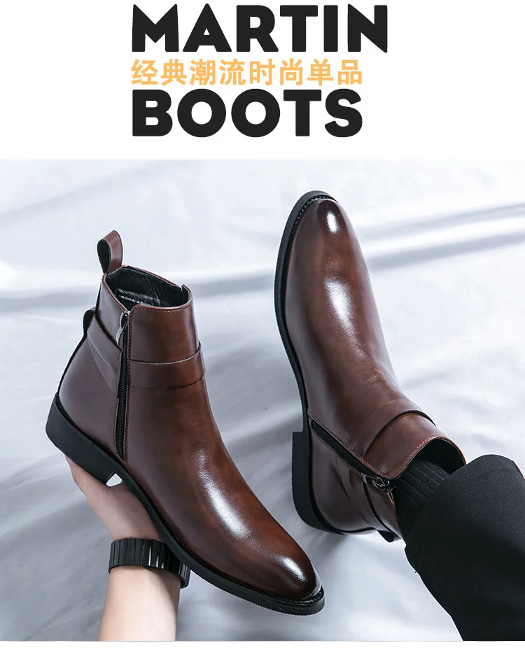 Men's Winter High-top Versatile Chelsea Boots Classic Soft and Comfortable Zippered Shoes Maximum Size 47 Black Leather Shoes