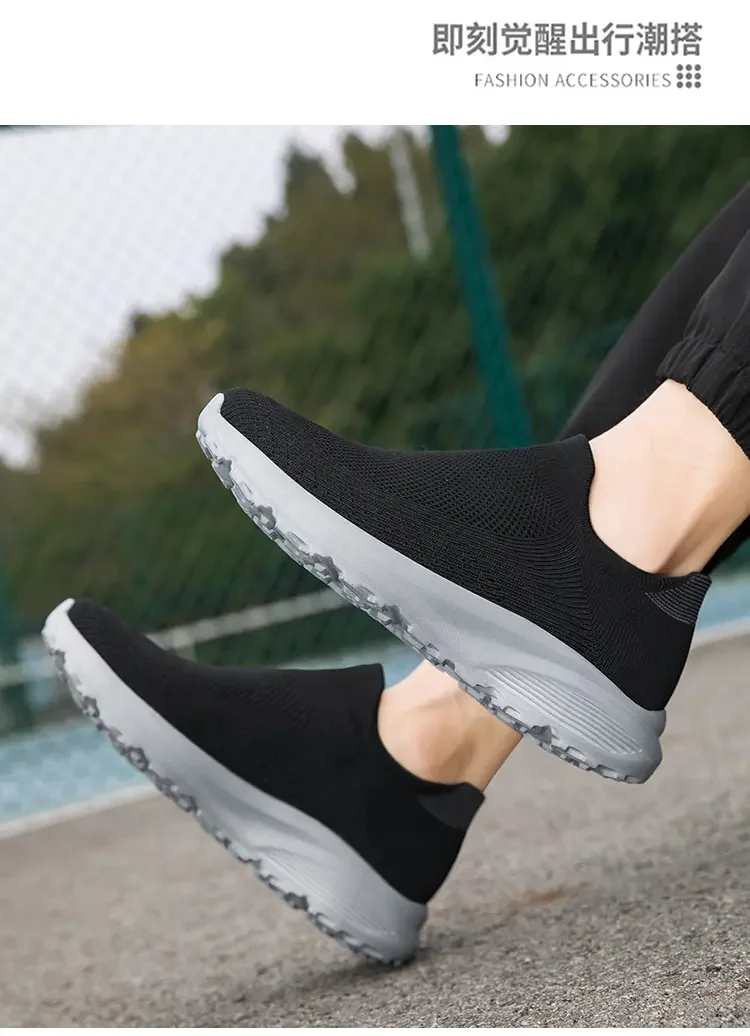 Outdoor Anti Slip Walking Men Shoes Summer Casual Sports Shoes Fashionable and Breathable Tennis Shoes Wide Foot Socks Sneakers