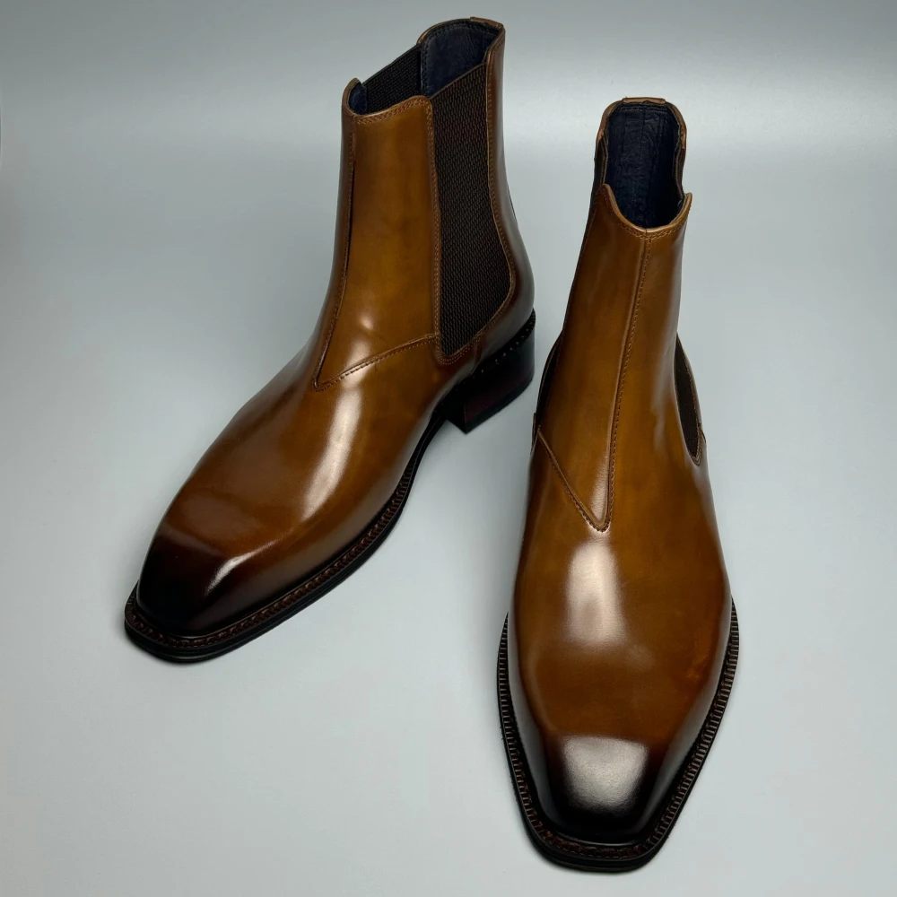 Retro Genuine Leather Men's Chelsea Boots - Premium Business Formal Trendy Boots Black/Brown